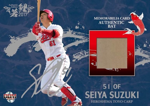 ☆メモラビリアカードは、すべて99枚以下限定。「神ってる」鈴木誠也のバットがBBMでは初カード化!